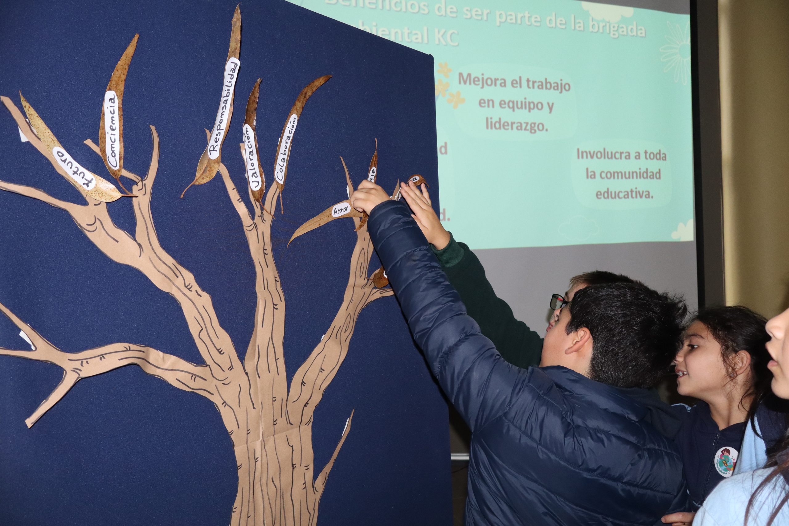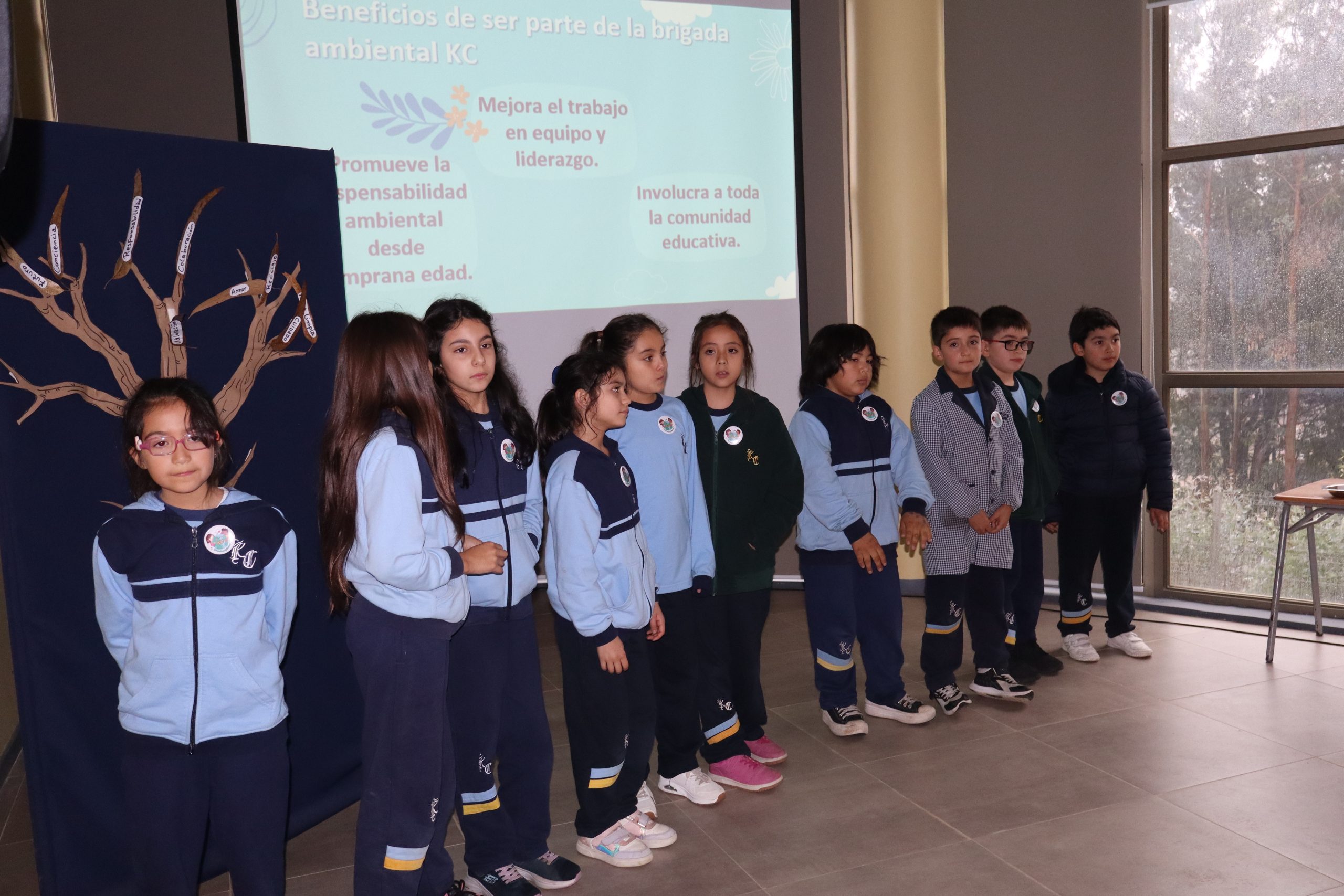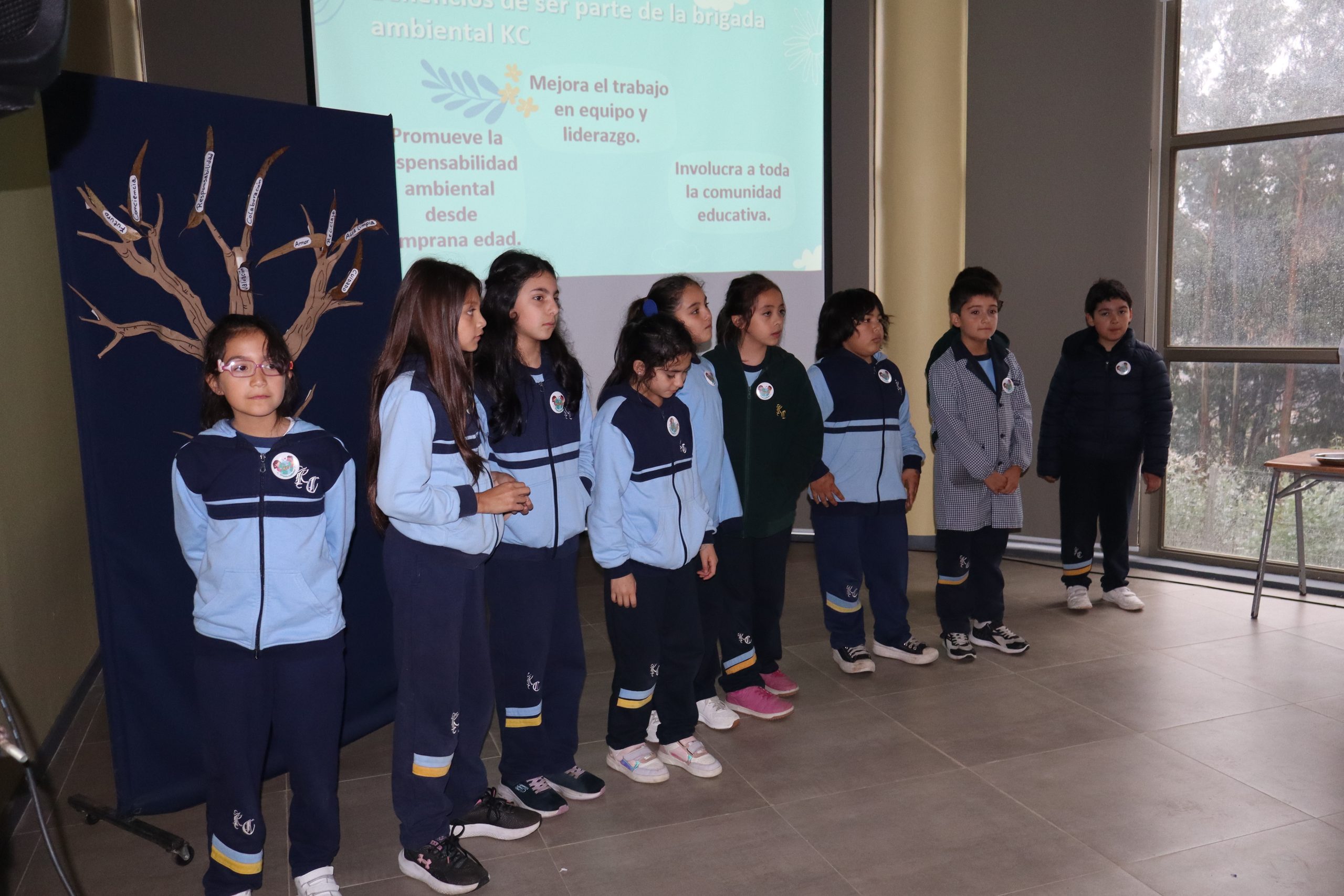 En esta instancia, se presentó oficialmente la Brigada Ambiental KC, un equipo conformado por estudiantes comprometidos con la protección del medioambiente. Cada uno de ellos compartió públicamente un compromiso personal por el cuidado del entorno, los cuales fueron representados simbólicamente en nuestro “tronco de eucalipto”, una intervención artística que quedará como recordatorio vivo de esta promesa colectiva.