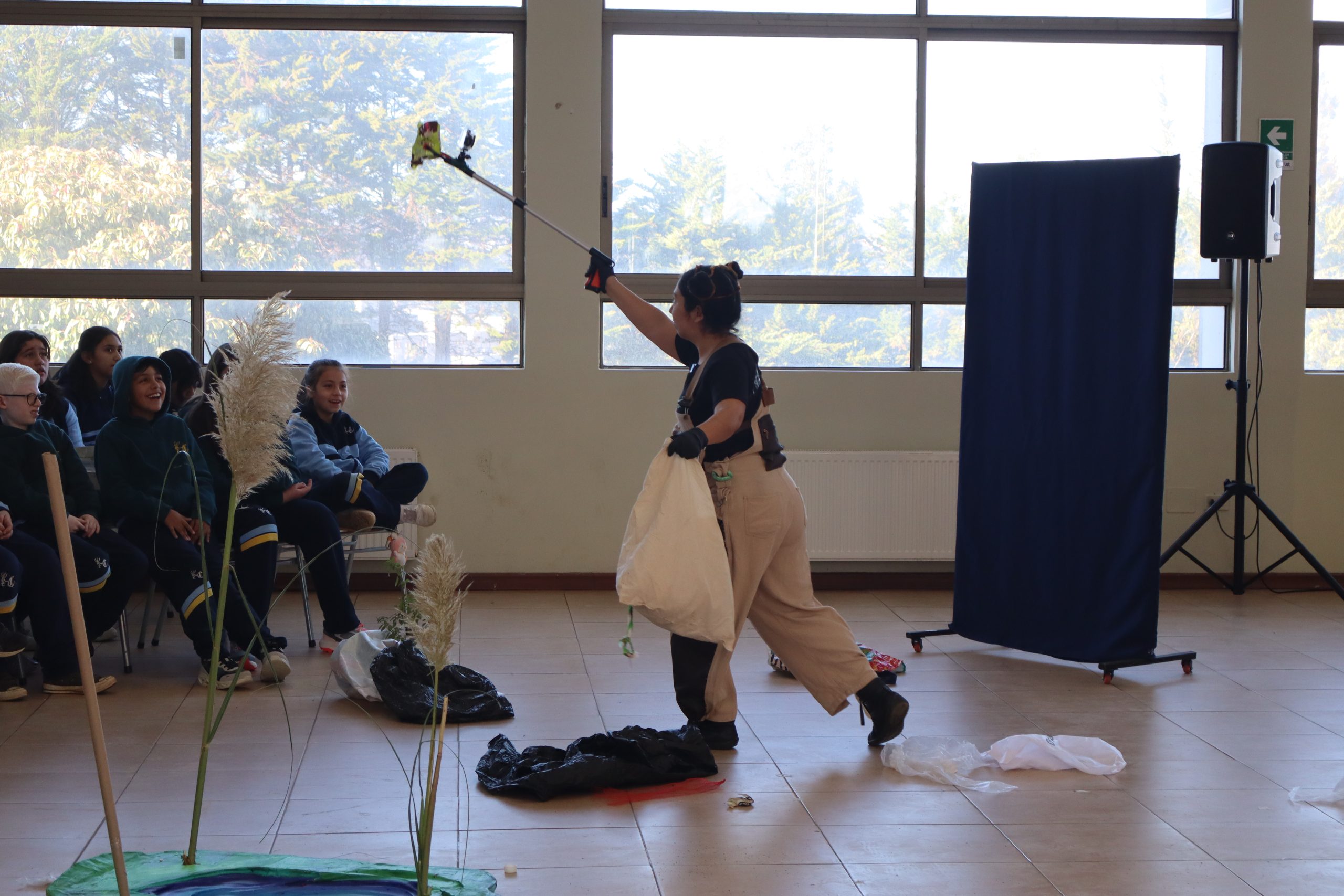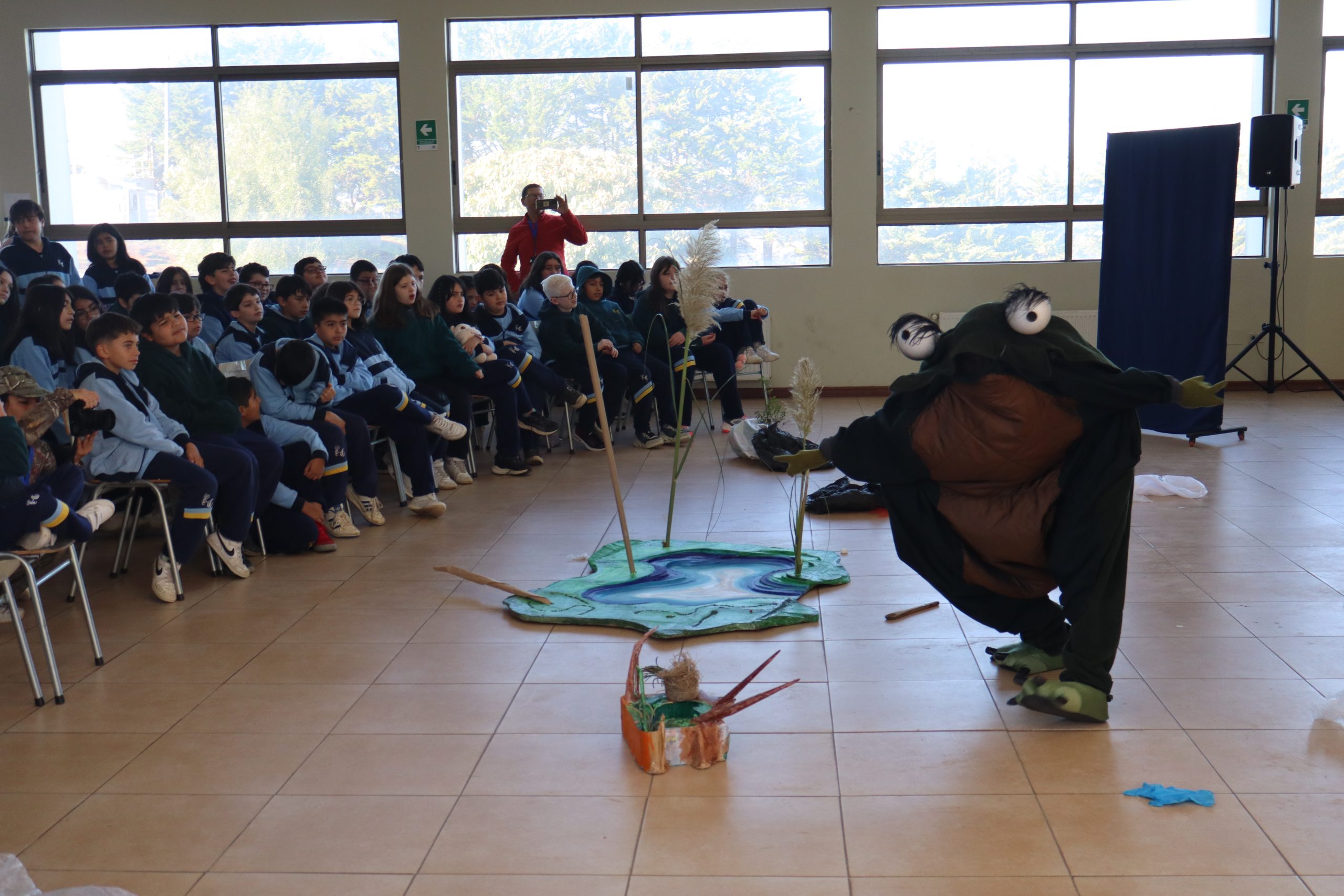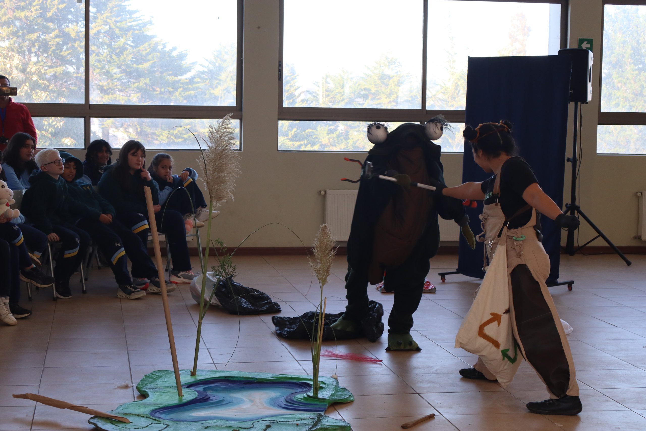 La actividad, desarrollada entre las 9:30 y 10:50 horas, tuvo como objetivo concientizar a los estudiantes sobre el cuidado del agua y los efectos del cambio climático, utilizando el arte escénico como herramienta educativa.