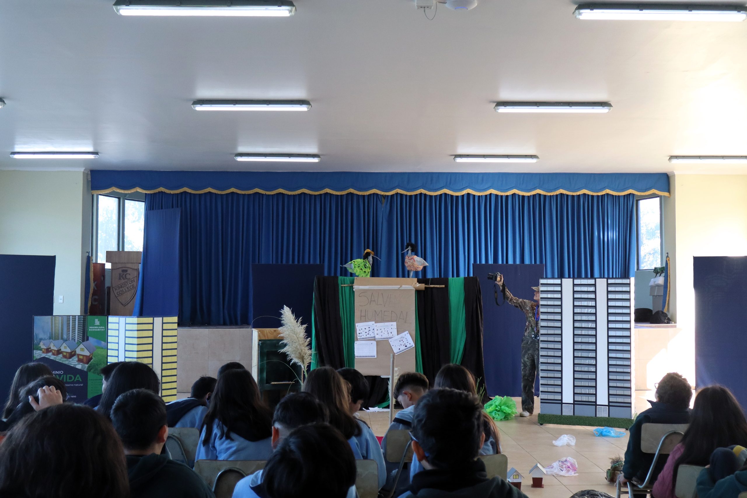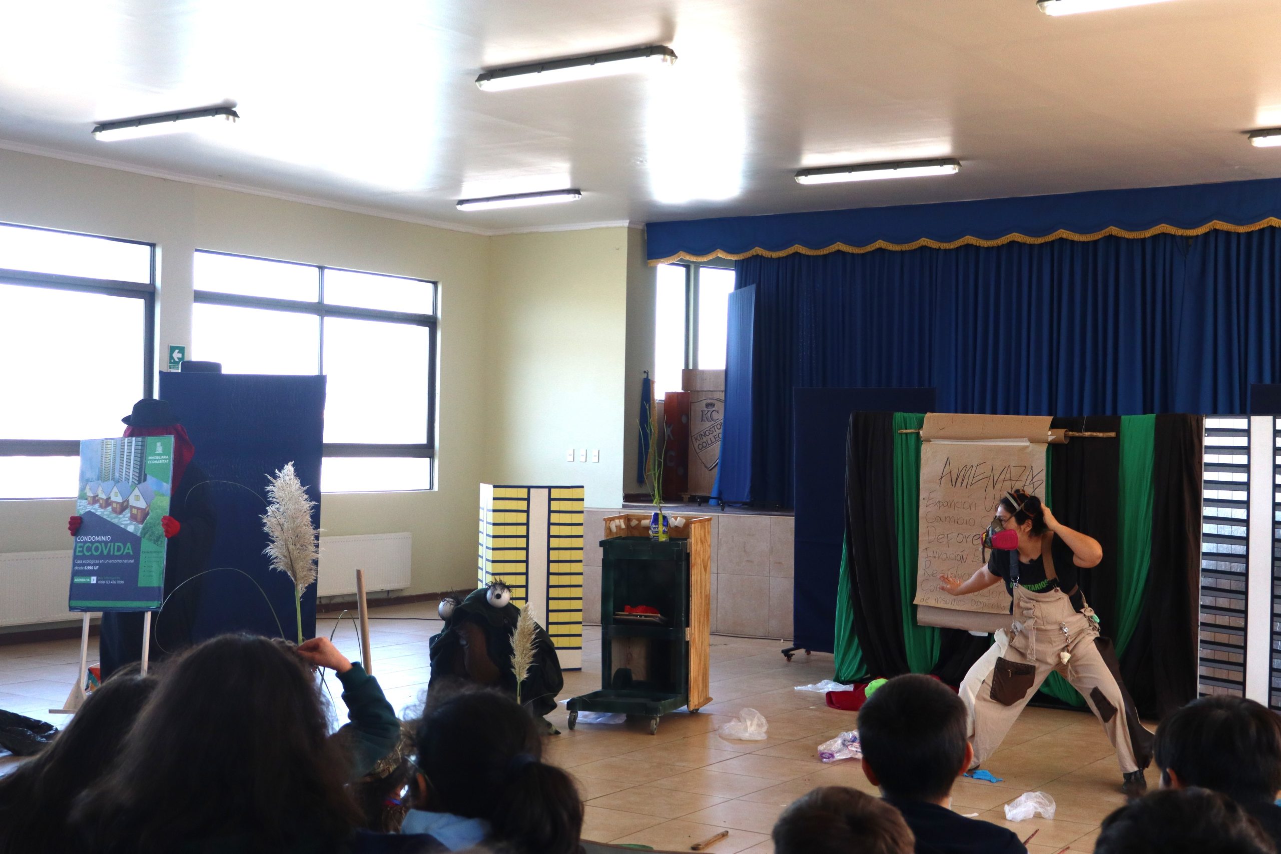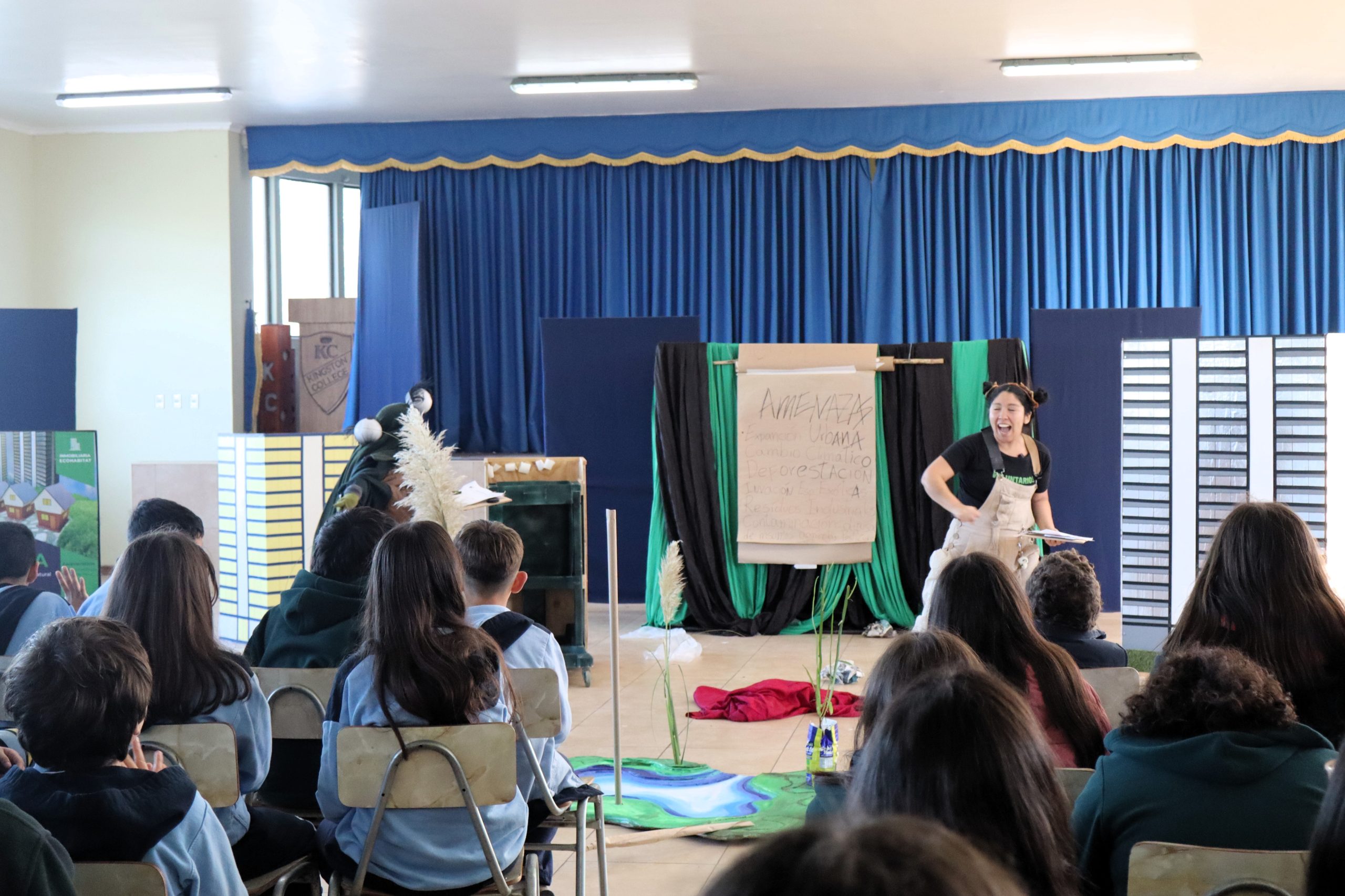 En el marco de las acciones de vinculación con el entorno, el pasado jueves 15 de mayo los estudiantes de 5º y 6º básico del Kingston College participaron en la obra de teatro “La Gota Curiosa y el Clima Cambiante”, presentada por la empresa constructora Atacagua.