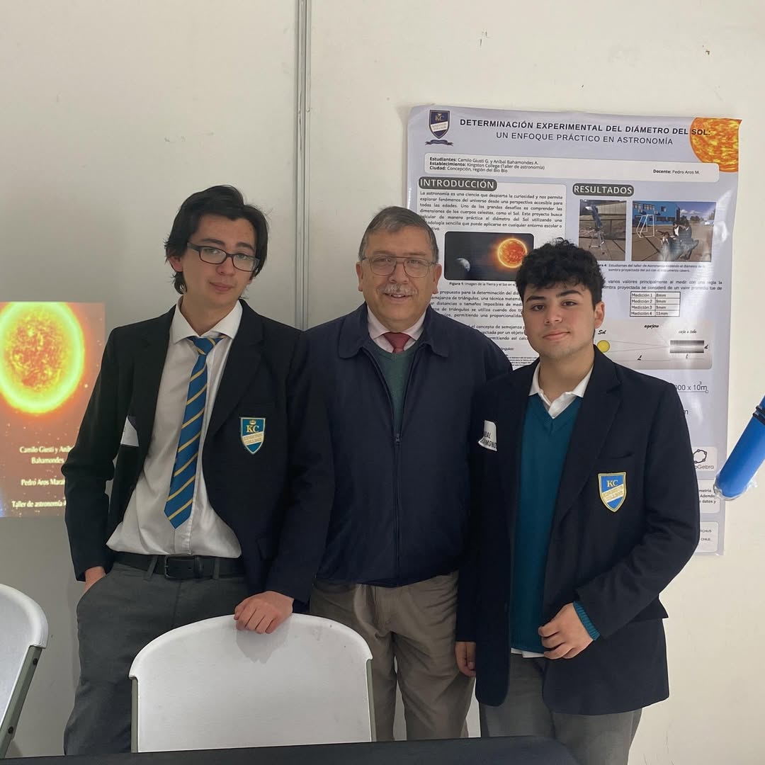 Participación destacada Camilo Giusti y Aníbal Bahamondes presentaron el proyecto “Determinación experimental del diámetro del Sol”, guiado por Sir Pedro Aros en el Taller de Astronomía.
